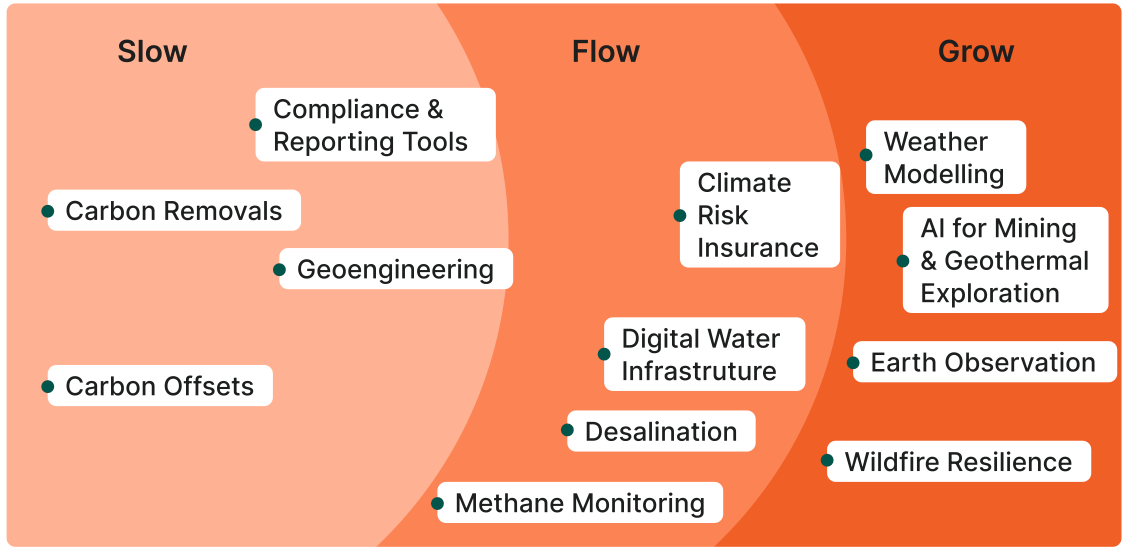 If you're in the flow or slow rings, your challenge is patience and capital efficiency. Enhanced geothermal was "great for the 2030s" six years ago and is now seeing companies file for IPO. Nuclear fission went from indignation ("that's not pure clean tech") to full force adoption. The timeline just stretched.